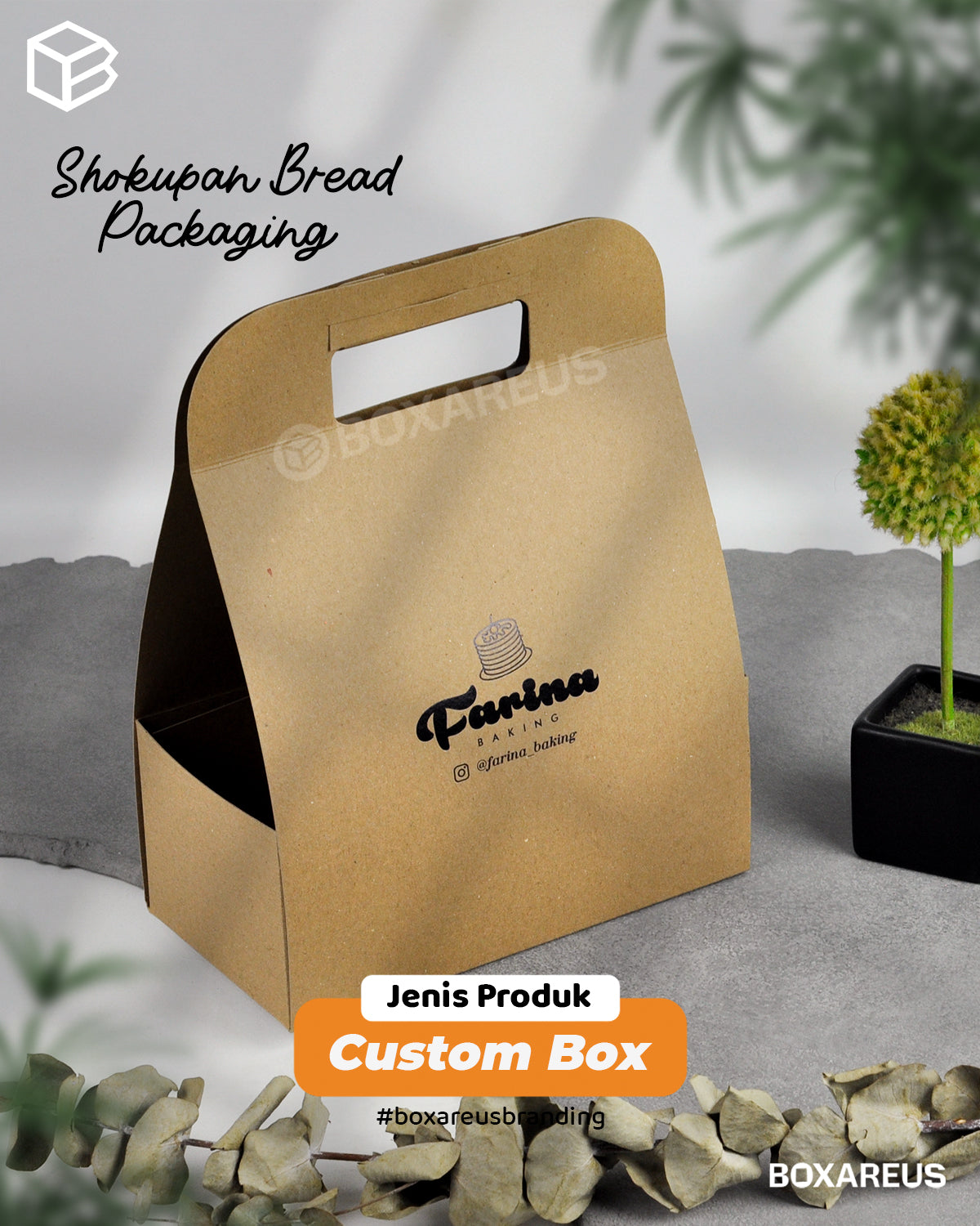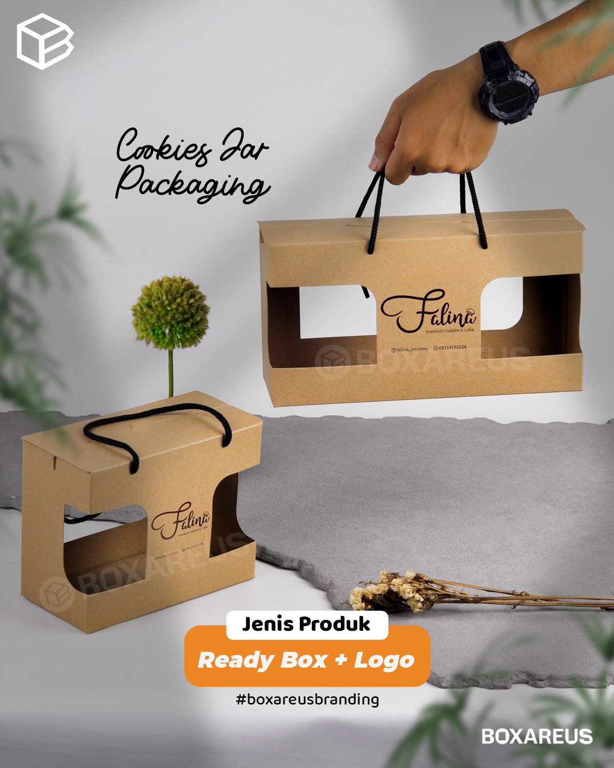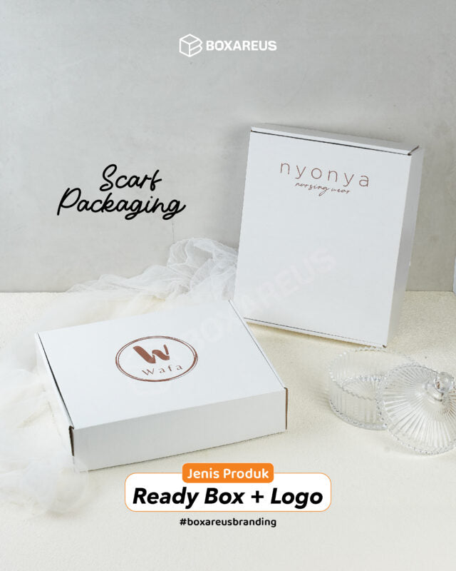 Gunakan box ready stock dari BoxAreUs dan tambahkan logo brand Anda untuk tampilan profesional secara cepat.