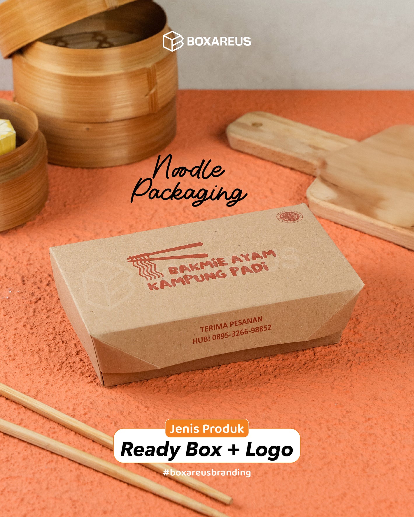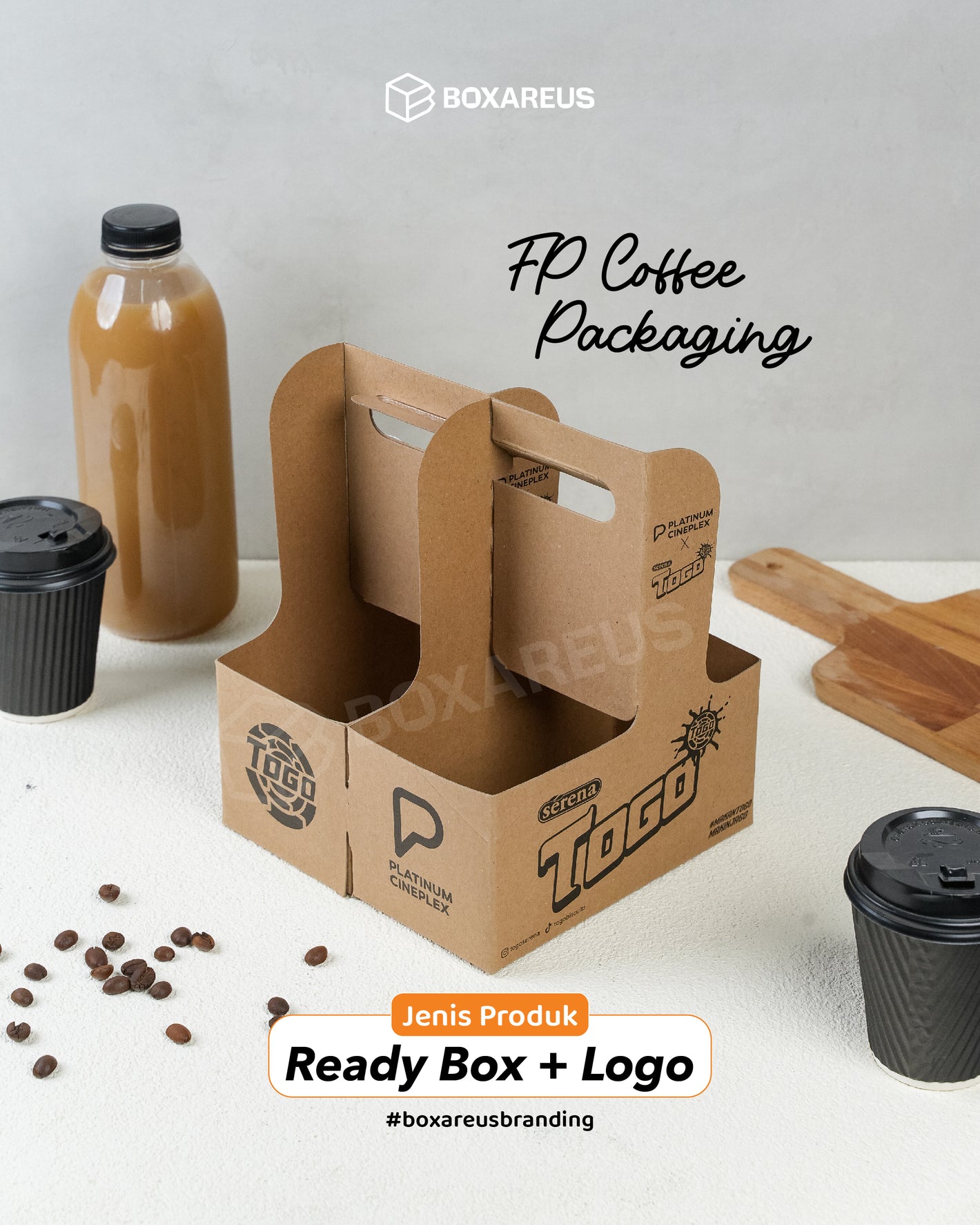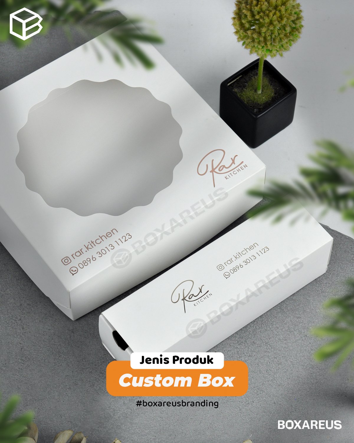 Gunakan box ready stock dari BoxAreUs dan tambahkan logo brand Anda untuk tampilan profesional secara cepat.