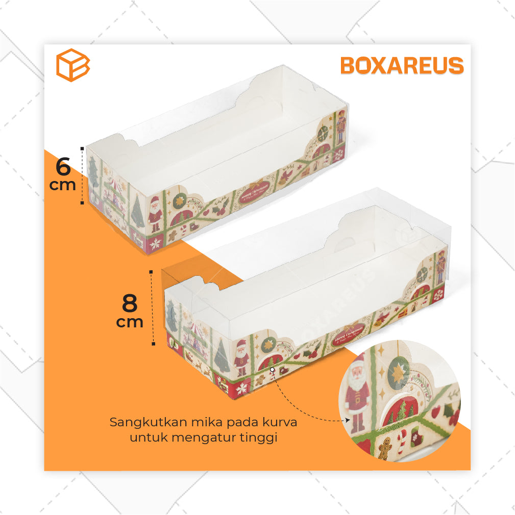 Ukuran Bestseller! Box multifungsi ini dapat disesuaikan tinggi nya ke 6 atau 8cm. Hadir dalam desain Edisi Natal yang spesial, membuat produkmu tampil semakin menarik. Tutup mika transparan membuat produkmu tampil dengan maksimal, terlihat dari atas. Cocok untuk beragam pastry (tiramisu cake, matcha, napoleon), kue (lapis legit, brownies, bolu), lasagna, hampers, atau gift lain nya. Bagian bawah ada lubang untuk memasukkan pita satin (lebar 1inc./2.54cm).