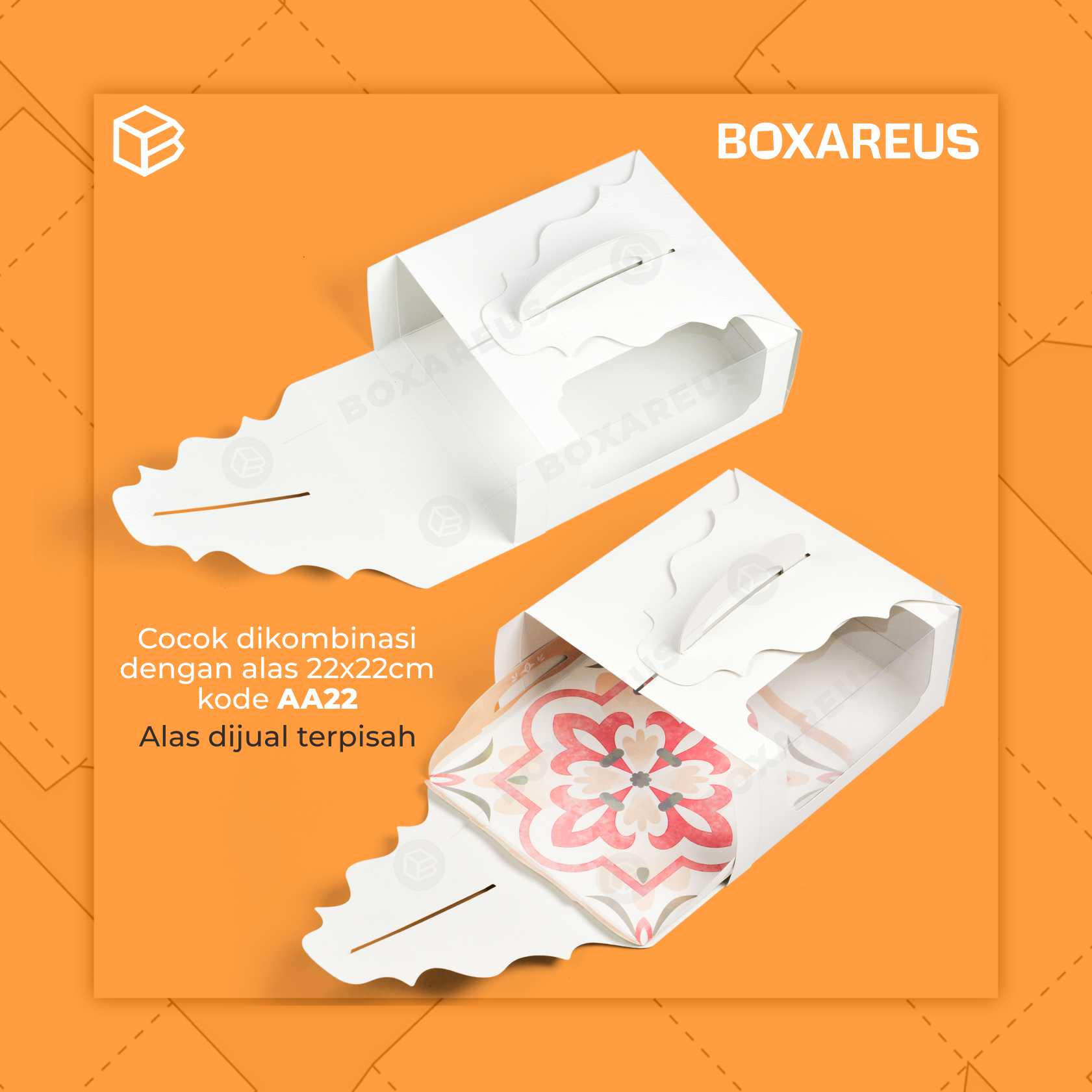 Box Multifungsi cocok untuk mengemas aneka produk manis-asin seperti birthday cake, marmer cake, sushi cake, kuotie tower, choux tower, kue mie ultah, dll.