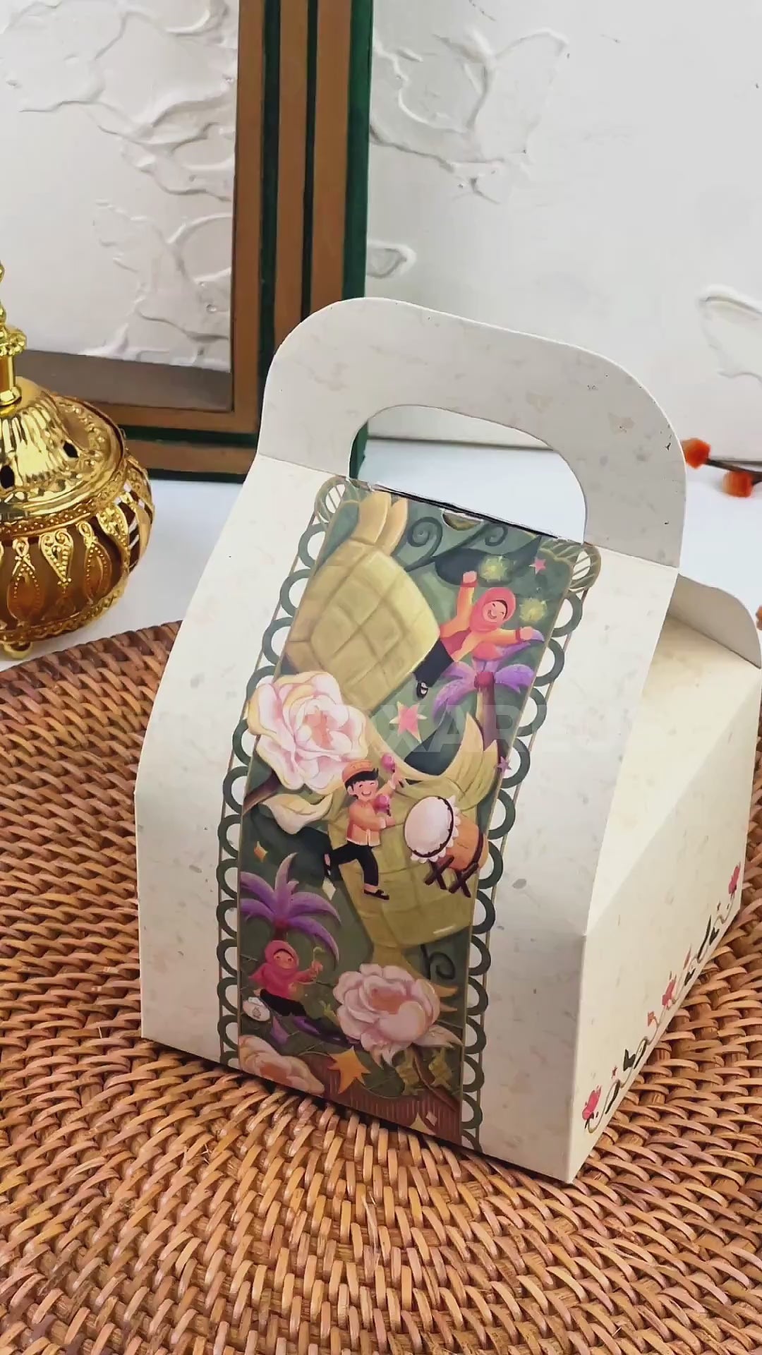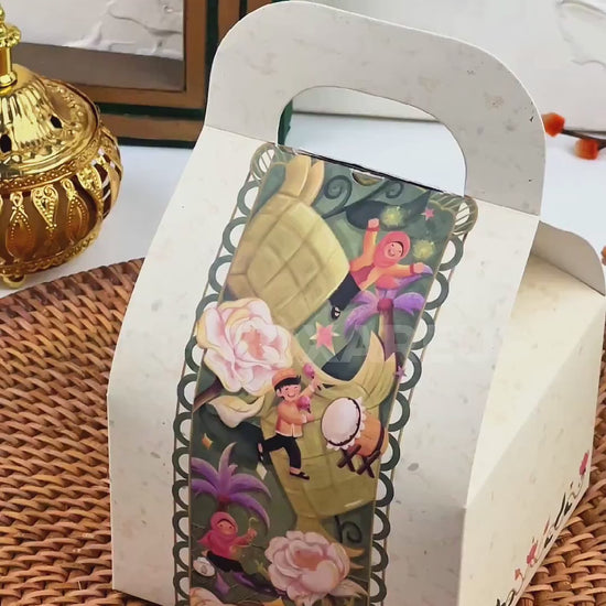 Box Hampers mini ini multifungsi dengan desain cantik bertema Lebaran, bernuansa soft & sedikit floral, siap memperindah tempilan hampers mu. Cocok untuk mengemas 1 toples 250-350gr (Rekomendasi toples hardtop 119 (kotak 250gr) atau hardtop 112 (kotak 350gr)), dessert box, mukena travel, hijab, scraft, sejadah travel, snack, dsb. Free Hangtag & tekstur bahan doff menambah box lebih cantik dan elegan.