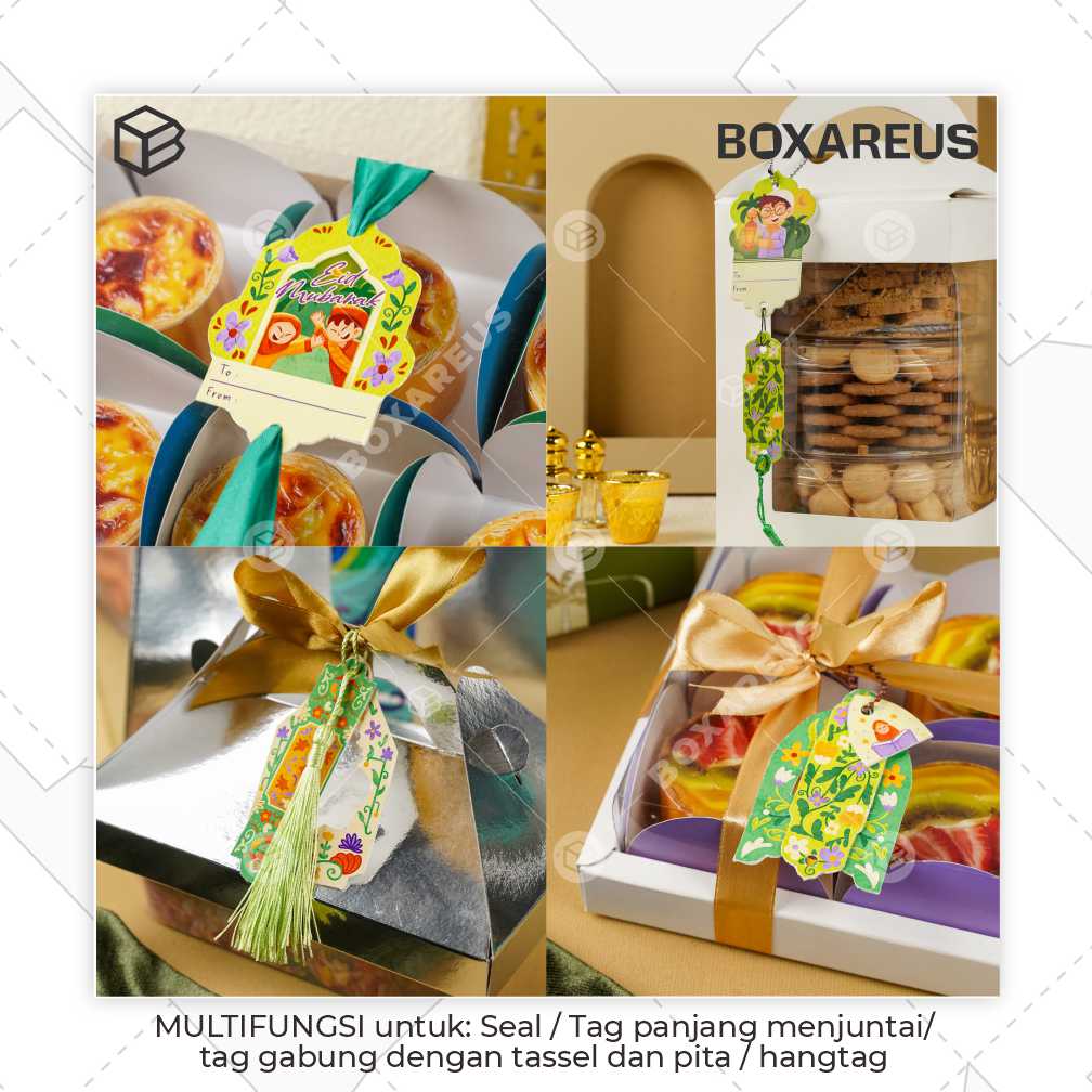 Hangtag bahan tebal anti-robek bertema Lebaran untuk dekorasi hampers Idul Fitri agar tampil lebih istimewa dan eksklusif. Gradasi warna yang matching, bisa dikombinasi/digabung 2-4pcs untuk kesan 3D dan tidak pelit. Bisa untuk hangtag atau seal tag box (yang lubang hangtagnya 2). Hangtag bisa dicabut pasang sesuai selera (besar, kecil, to/from, atau frame style), desain to/from bisa ditulis dengan pulpen/spidol.
