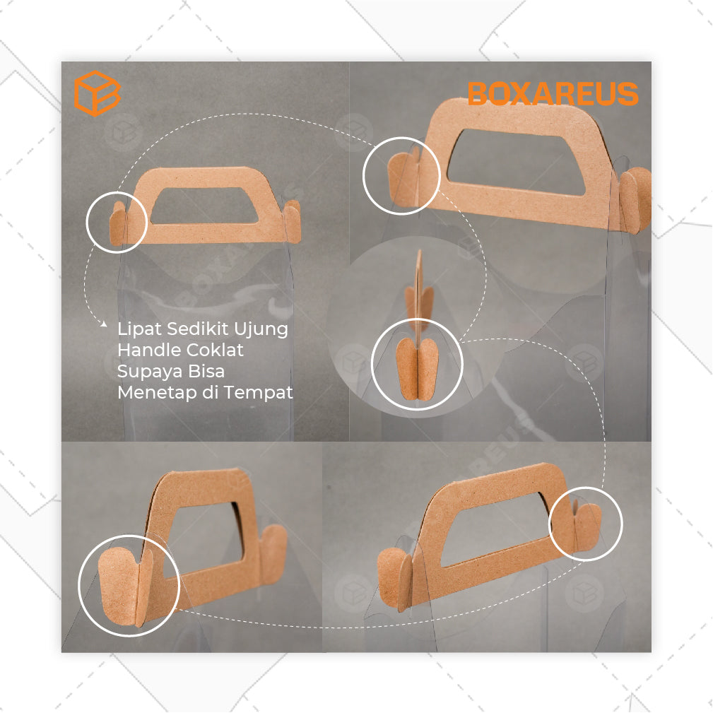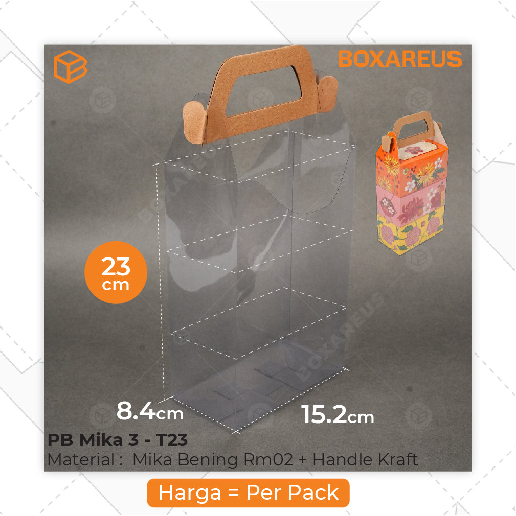 Kantong berbahan Full-Clear Mika dengan Gagang Kraft ini cocok untuk mengemas box/produk anda. Cocok untuk mengemas 2-3 toples 350g (merk hardtop 901), aneka barang, hampers, snack, souvenir, atau dikombinasi dengan seasonal packaging dari Boxareus! Fungsional dan praktis, mudah menenteng produk. Terdapat 2 ukuran kantong mika, untuk dikombinasi dengan seasonal packaging.