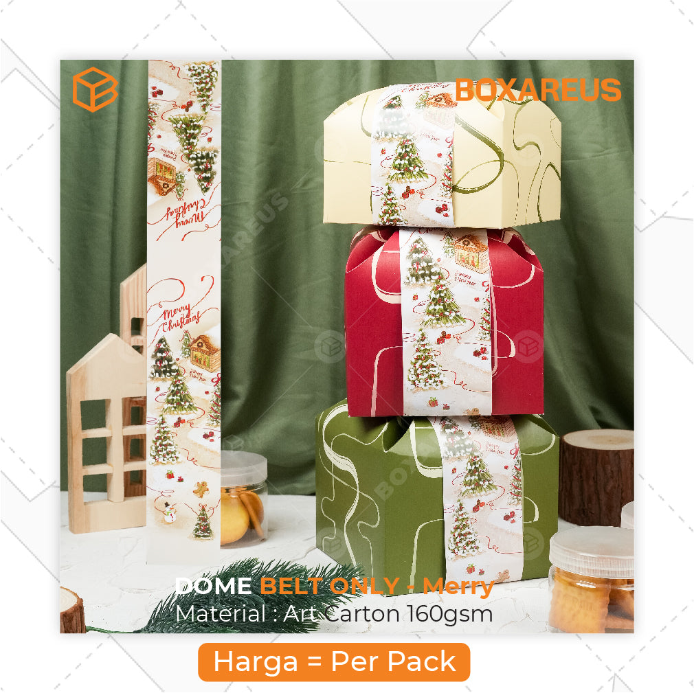 Paper Belt tema Natal ini hadir dengan desain unik, imut, dan dengan warna dasar beige yang lembut bisa memberikan tampilan yang subtle namun tetap mencolok. Cocok dikombinasi dengan box polos apapun untuk jadi tema Natal, serta memberikan tampilan kontras yang menarik untuk hampers Nataru.