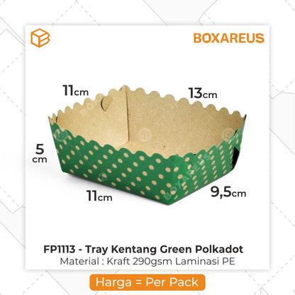 Bentuk lembaran Model Lipat dan kancing, praktis dan memudahkan dalam pengiriman.Cocok digunakan untuk makanan seperti kentang goreng, dimsum, takoyaki, gorengan, nachos, wings ayam, dll.