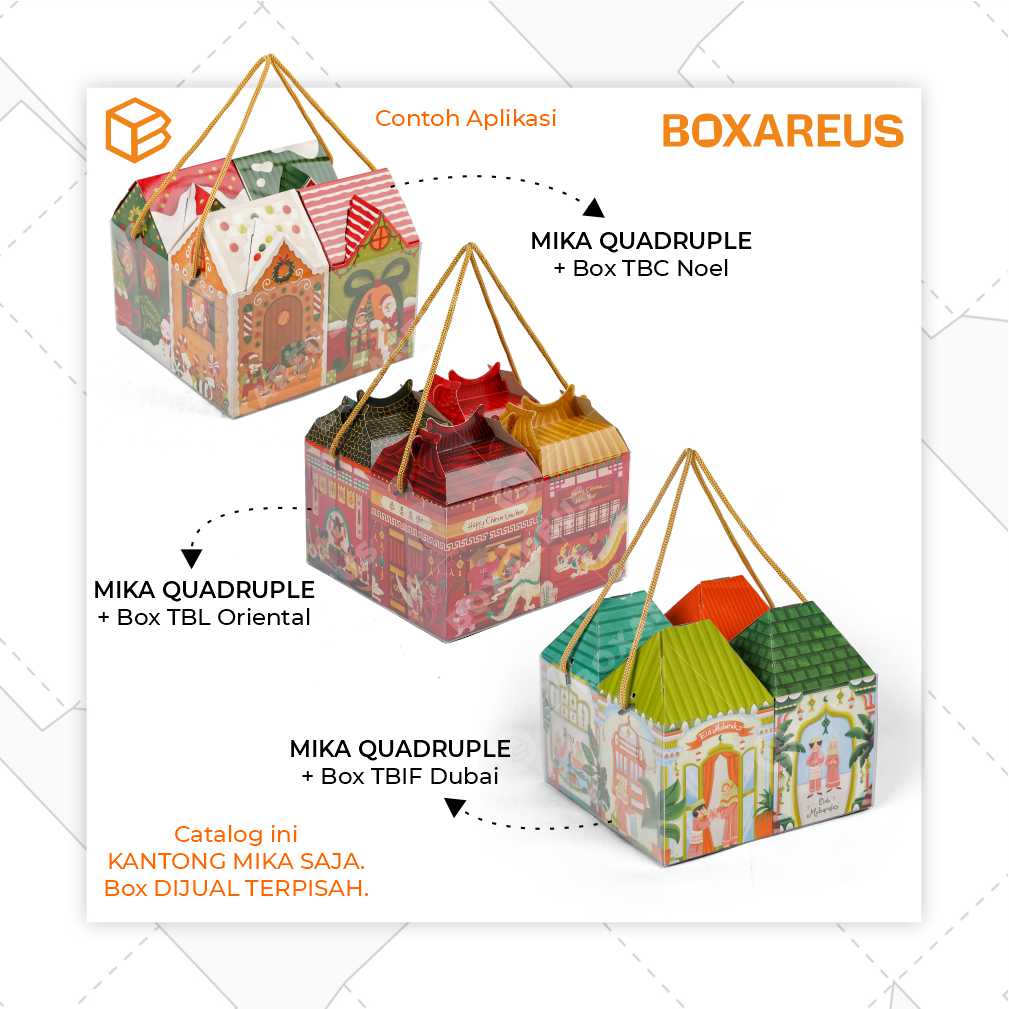 Mika Quadruple: 19.2 x 19.2 x 11cm (muat 4 pcs box TBC Noel/ TBL Oriental/TBIF Dubai)