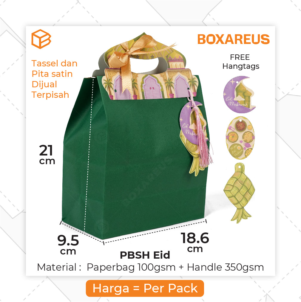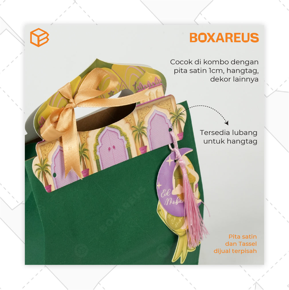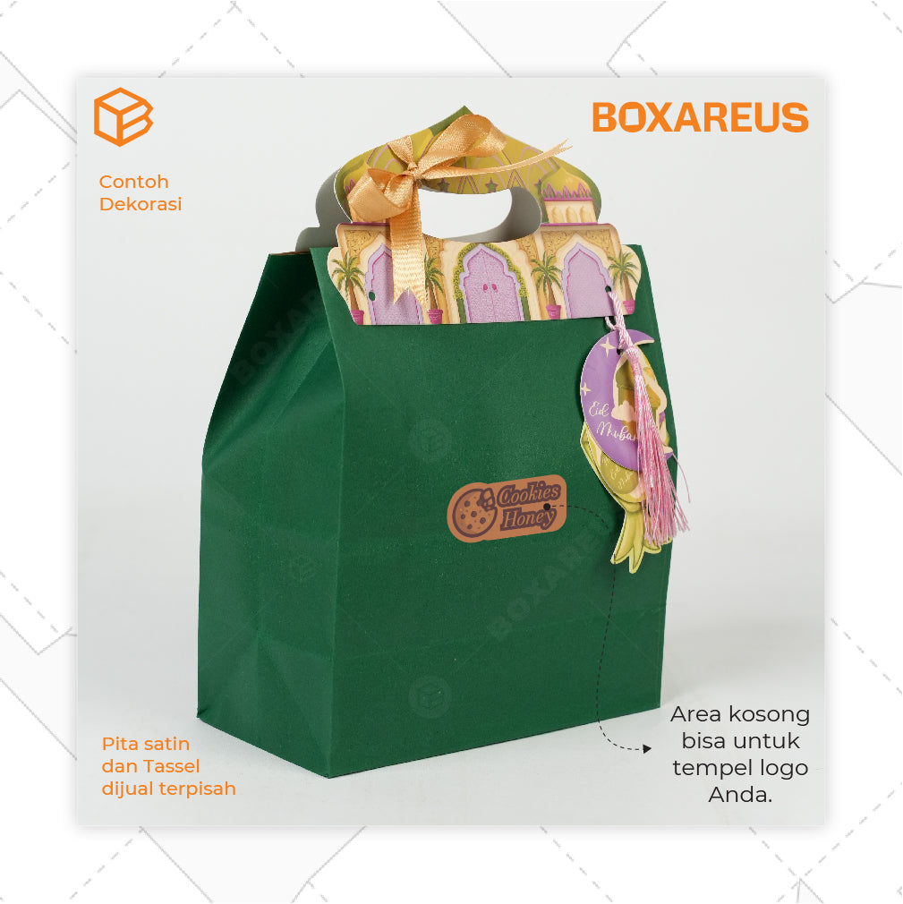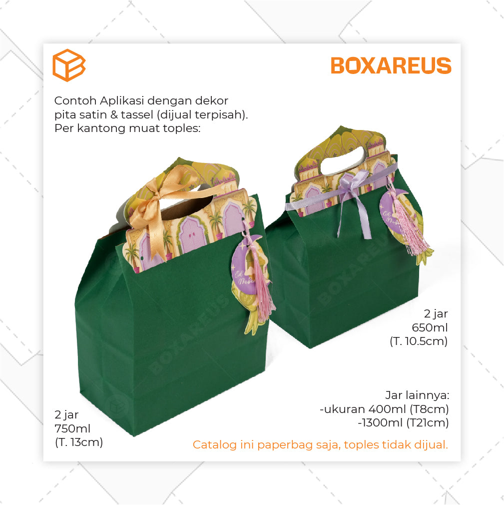 Paperbag ini sangat cocok untuk mengemas hampers Lebaran praktis, ekonomis tapi tetap tampil manis. Cocok untuk mengemas makanan ringan / hampers ringan / 2 toples jar (diameter 9cm) tinggi hingga 21cm, dll. Desain bagian tengah paperbag yang polos memberikan ruang sempurna untuk menempelkan stiker logo Anda. Cocok dihias dengan pita satin 1 cm, bakers twine, hangtag, dan berbagai dekorasi lainnya (dijual terpisah).