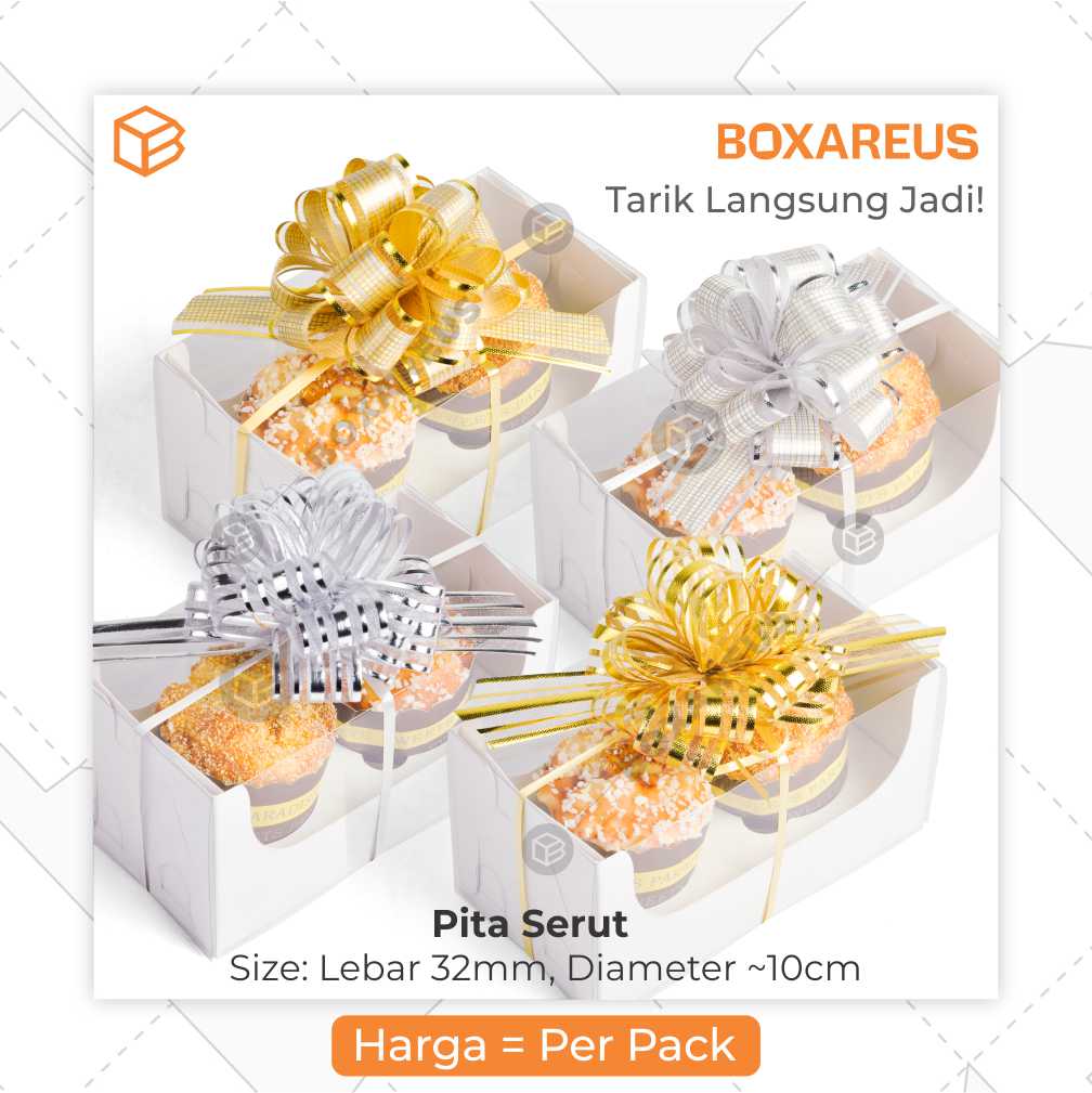 Pita Serut praktis, instan, mudah, sekali tarik langsung ciamik. Cocok untuk dekorasi rangkaian bunga, hampers packaging, gift box, tumpeng, hand bouquet, kado, souvenir, dll.