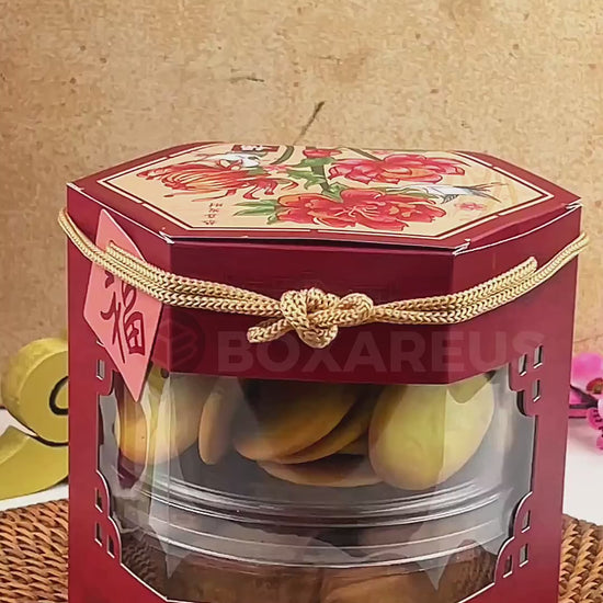 Box Hexagon dengan desain lukisan embroidery oriental ini dilengkapi dengan jendela mika yang luas. Sudah termasuk sepasang tali golden-brown yang indah untuk disimpul. Free hangtag FU, kartu ucapan dan holder kartu (bisa ditempel di area manapun, bahkan slot kartu bisa diisi dengan kartu nama brand-mu).